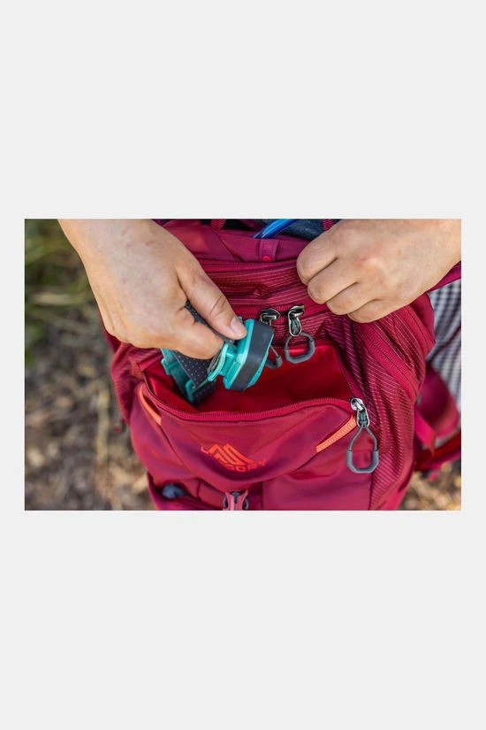 - Onafhankelijk vak met ritssluiting en SpeedClip-hydratatiehanger, compatibel met Gregory’s Hydro Reservoirs (reservoir niet inbegrepen).